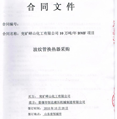 山東兗礦嶧山化工購買我司波紋管換熱器